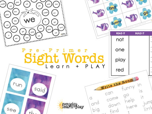Practice and PLAY with pre-primer sight words. This set includes flashcards and activities for 40 pre-primer sight words. You’ll receive themed flashcards, a memory game, Look and Dot no prep pages, Read It Build It Write It no prep pages, and Write the Room tracing pages. This is a 54 page PDF document available for instant download.