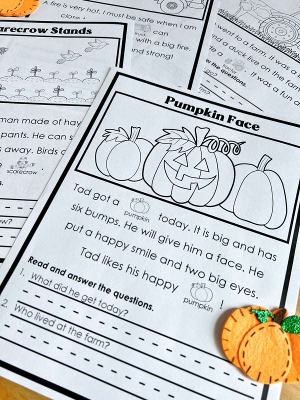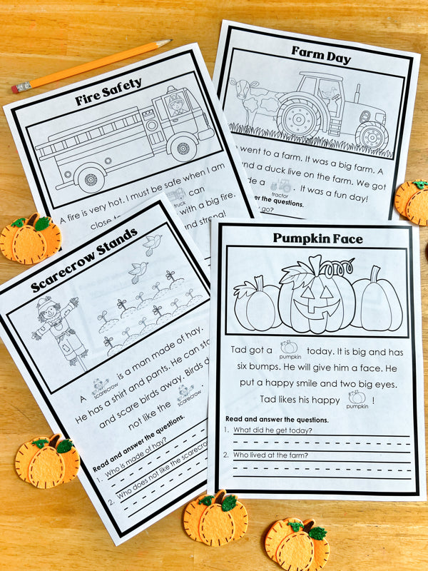 This file includes 4 different reading passages for beginning readers. Each passage has a section to color and two basic comprehension questions. The goal for these activities is to introduce the concept of reading comprehension. For more advanced readers and those working on comprehension look for Reading Comprehension Level B.