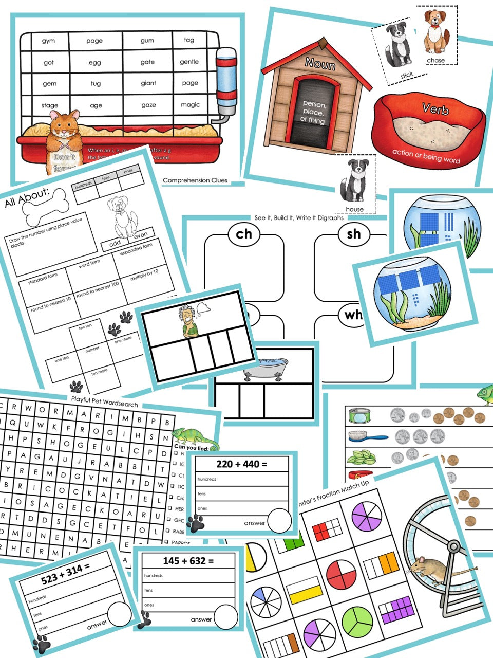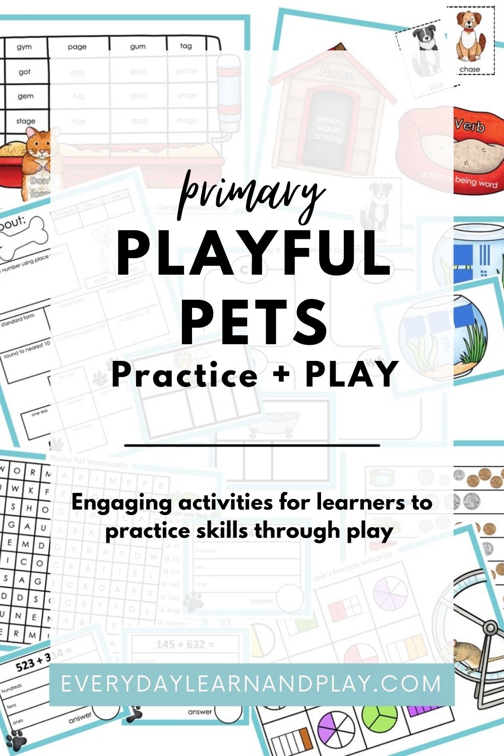 Playful Pets Primary PLAY is a 1st-3rd grade companion to the original Learn + PLAY Calendar. There are 10 brand new pet themed activities (see full list below.) The no prep activities are engaging and fun for growing learners. To accommodate for various skill levels some activities offer a more than one version. It is suggested that you laminate or use a dry erase pocket or page protector for prolonged use.